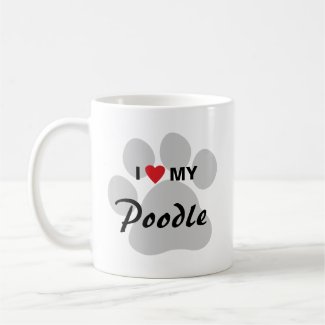 Zazzle mug from shop4animals: I Love (Heart) My Poodle Pawprint